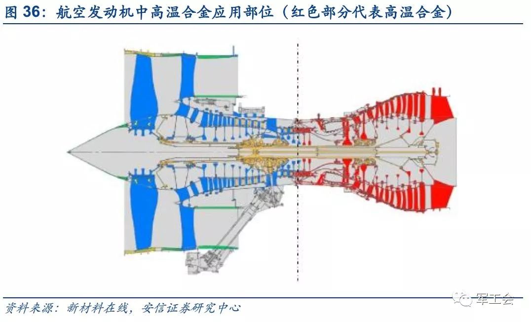 高温合金主要用于发动机四大热端部件:燃烧室、导向器、涡轮叶片和涡轮盘,此外,还用于机匣、环件、加力燃烧室和尾喷口等部件。