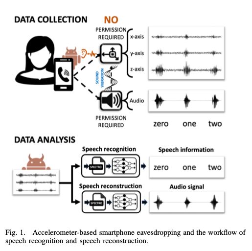 智能手机 App 可在用户不知情、无需系统授权的情况下,利用手机内置的加速度传感器来采集手机扬声器所发出声音的震动信号,实现对用户语音的窃听。