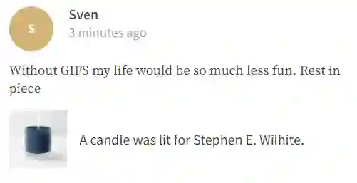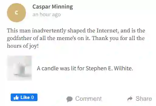 「Wilhite先生不经意间改变了整个互联网。他是网络所有动图的创始人。谢谢你给我们带来了这些愉快的时光!」