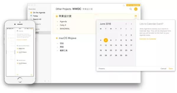 在今年 5 月底,Agenda 发布了 iOS 版本,成为了一个支持 Mac、iPad 和 iPhone 的全平台应用,使用场景拓宽了不少,向更成熟的笔记应用又迈进了一步。