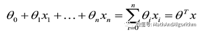 逻辑回归是一种分类方法,用于两分类问题(即输出只有两种,表示为0和1)。根据上面步骤,需要先找到一个预测函数hθ(x),在这里,我们假设是线性边界的情况,表示形式为: