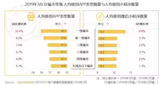 作为可以从大公司平台快速获得流量的工具,小程序正在经历快速增长,每月使用小程序用户超过 500 万的产品增速已经超过了移动应用的增速。