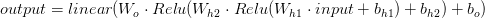 设计网络结构(architecture):确定层数、每一隐藏层的节点数和激活函数,以及输出层的激活函数和损失函数。上图用的是两层隐藏层(最后一层是输出层)。隐藏层所用激活函数 a() 是 ReLu,输出层的激活函数是线性 linear(也可看成是没有激活函数)。隐藏层都是 1000 节点。损失函数 L() 是用于比较距离 MSE:mean((output - target)^2)。MSE 越小表示预测效果越好。训练过程就是不断减小 MSE 的过程。到此所有数据的维度都已确定: