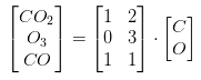 1. 如果权重 W 的数值如(1),那么网络的输出 就会是三个新物质,[二氧化碳,臭氧,一氧化碳]。