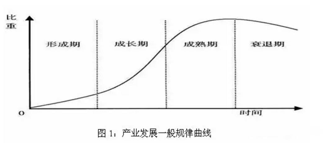 从上面的产业曲线图中可以看出,一般产业都有形成、成长、成熟、衰退四个时期。我们在选择一个产业时,成长(发展)期进入是最好的,成熟期也可以,衰退期就要慎重考虑了,除非你已无太多要求,只想随便干两年退休。