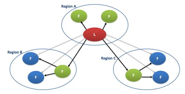 基于unique proposer的分布式系统的存在的一个瓶颈点就是主节点是唯一的内容输出源,当集群存在大量节点的时候,主节点的大量网络收发工作会导致主节点的负载过大,引发CPU和带宽的瓶颈;在全国/全球部署的时候,所有节点和主节点之间的直接通信会造成跨region之间的长传/国际链路的带宽占用过大。