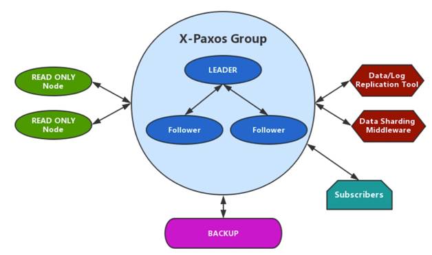 因此在整个分布式数据库的设计之初,我们就独立设计了分布式一致性协议模块,并把它独立为X-Paxos。X-Paxos为AliSQL X-Cluster解决了分布式一致性问题,同样可以快速赋予其他系统分布式一致性能力。