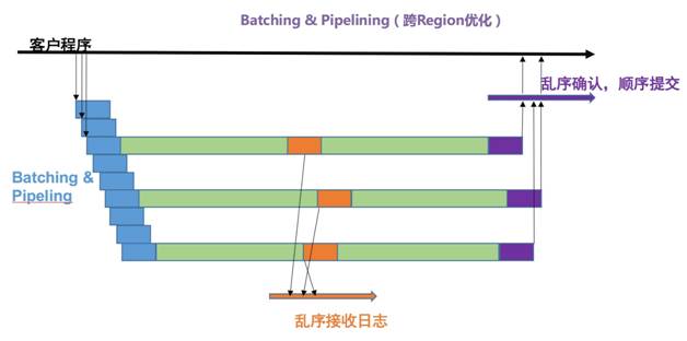 Pipelining是指在上一个消息返回结果以前,并发的发送下一个消息到对应节点的机制,通过提高并发发送消息数量(Pipelining数量),可以有效的降低并发单请求延迟,同时在transmission delay小于propagationdelay的时候(高延迟高吞吐网络),有效提升性能。