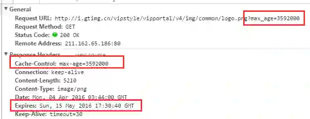而静态资源部分,特别是图片资源,通常会设定一个较长的缓存时间,而且这个时间最好是可以在客户端灵活修改的。以腾讯的某张图片为例: