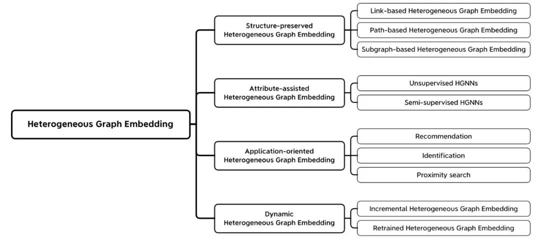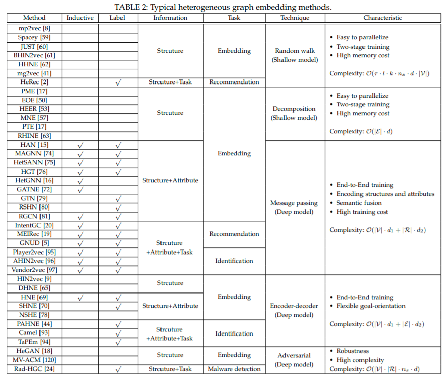 该论文首先从使用的信息这一角度对现有的异质图嵌入方法进行总结归纳,具体如下: