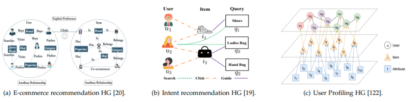 任务依赖:异质图与实际应用密切相关,但有许多实际问题尚未解决。例如,在实际应用中,构建合适的异质图可能需要足够的领域知识。此外,元路径或者元图被广泛用于捕获异质图的结构,然而,与同质图中结构(例如一阶和二阶结构)被很好的定义不同,元路径选择也可能需要先验知识。此外,为了更好地方便实际应用,我们通常需要在异质图的嵌入过程中,仔细地编码辅助信息(如节点属性)[3],[4]或更高级的领域知识[5],[6]。