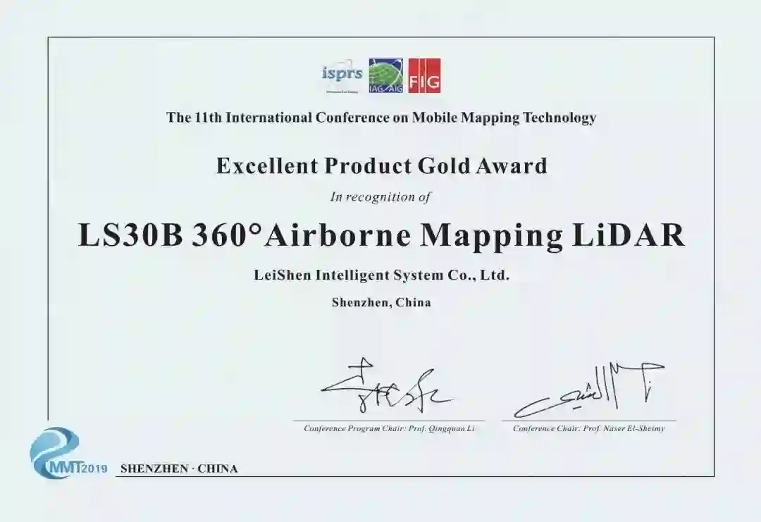 5月6-8日,第十一届国际移动测量技术大会(The 11th International Conference On Mobile Mapping Technology)于深圳大学成功举办。镭神智能应邀出席了大会,并就目前镭神最新的测绘专用高端远距离激光雷达及解决方案的研发成果做了相关演讲报告和展示,其中LS30B系列机载测绘激光雷达荣获了大会颁发的优秀产品金奖。