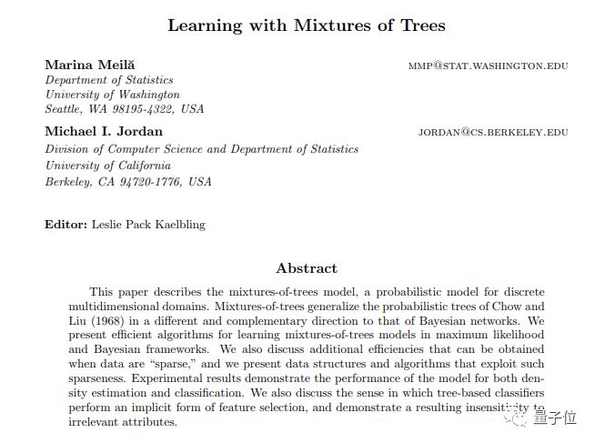 其中一篇论文,是在2000年发表的。作者之一就是吴恩达的导师,迈克尔·乔丹。