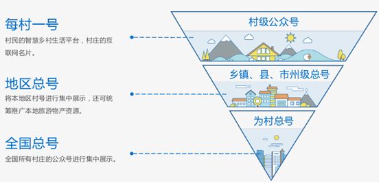 除了为每个村庄量身打造一个升级版公众号,为村项目还打造了一个地区的为村总号。
