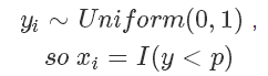 比如我们都学过的抛硬币,期望它的结果是符合一个伯努利分布的,定义正面的概率为 p ,反面概率为 1-p 。最简单地使 f(x)=x,在现实中我们就会通过不断地进行抛硬币这个动作,来评估这个概率p。