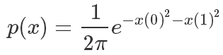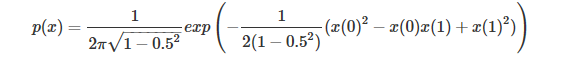 return 1/(2*PI*math.sqrt(1-0.25))*np.exp(-1/(2*(1-0.25))*(x[0]**2 -x[0]*x[1] + x[1]**2))