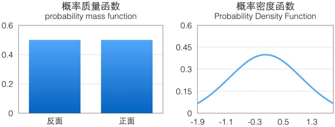 可以看到蒙特卡洛法其实就是按一定的概率分布中获取大量样本,用于计算函数在样本的概率分布上的期望。其中最关键的一个步骤就是如何按照指定的概率分布 p 进行样本采样,抛硬币这个 case 里伯努利分布是一个离散的概率分布,它的概率分布一般用概率质量函数(pmf)表示,相对来说比较简单,而对于连续概率分布我们需要考虑它的概率密度函数(pdf):