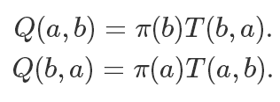 结论很清晰:这样一个转移概率函数T是满足细致平稳条件的,而且和Metropolis里面不同:它不是对称的。