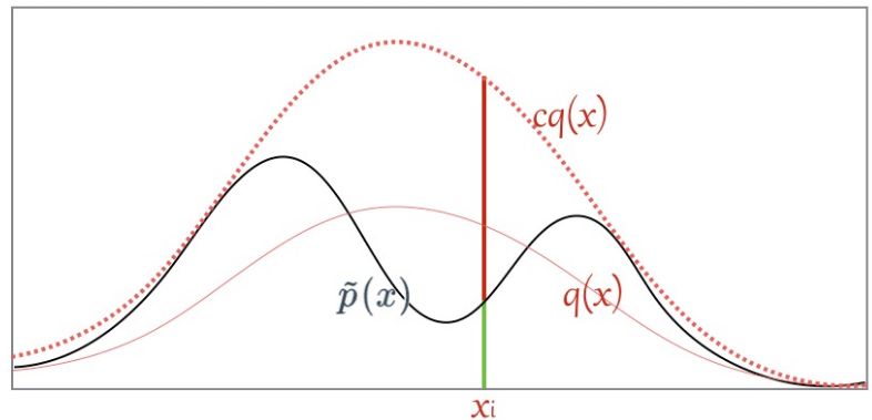 其中 c 是需要选择的一个常数。然后我们从 q 分布中随机采样一个样本 ,并以