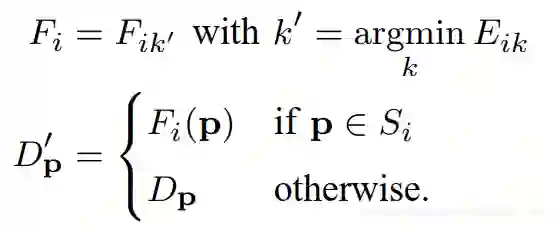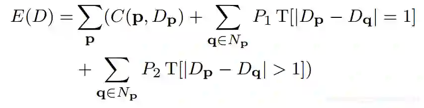 计算出块 Si的最优视差平面后,便可通过平面公式计算出块内非遮挡无效像素的视差值。非遮挡像素的判断规则上一篇博客有讲解。最后的优化公式如下: