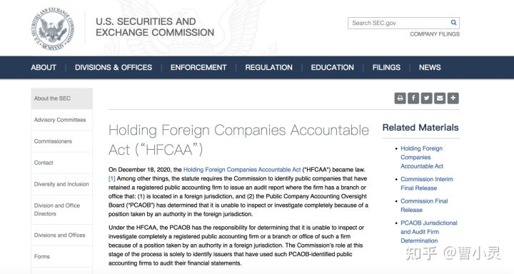2020年就开始闹,2021年落地的《外国公司问责法》基本就是冲着中国公司来的,虽说场面上说的是要求在美国上市的外国公司要铺路是否为外国政府所有或者控制这些冠冕堂皇的理由,其实实操里面要求的是向美国监管机构提供未脱敏的财务信息和经营数据。