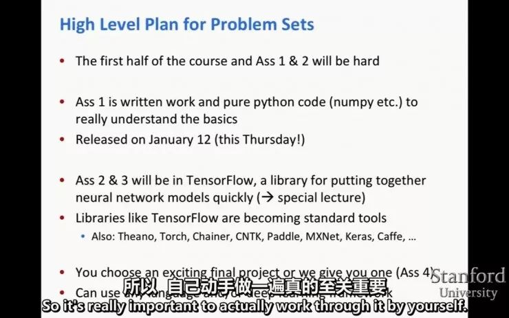值得注意的是,CS224d 中英字幕课程也会放出课后作业和项目练习。