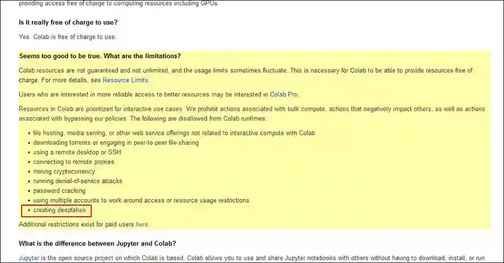 就在Colab最近的一次更新中,谷歌对Deepfake发布了“禁令”:不再允许用户在网站上训练该模型。