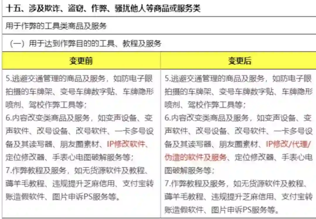 不过日前,淘宝平台已对《淘宝平台违禁信息管理规则》进行了部分修改,将明确禁止发布代写/代拍买家秀、软件、种草笔记、软文等涉嫌对消费者进行欺骗性销售诱导的商品或信息,以及明确禁止销售IP修改/代理/伪造的软件及服务。