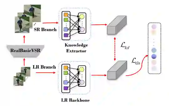 提出了高低分双模态行为识别训练框架,用超分辨率网络知识指导低分辨率行为识别;