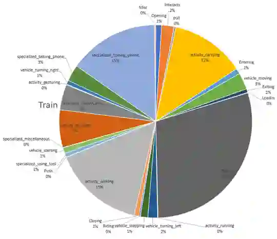 数据集呈现严重的类别不平衡现象。图2展示了TinyVIRAT训练集的样本比例分布。