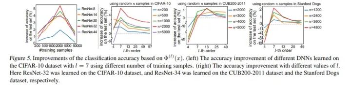 前文中我们已经发现,当特征分量的复杂度为网络深度一半时,该分量是对任务最有效的。因此,我们将神经网络原始特征 替换为所拆分出的有效特征分量,使神经网络的分类性能最高提升了5%;并且,我们发现中阶复杂度的特征对神经网络性能的提升更加有效。