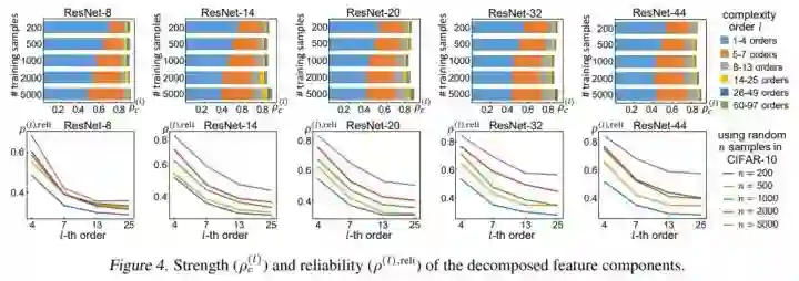 1.可靠性: 本课题组前期的特征表达一致性理论[1]已经证明,对于同一项任务,不同神经网络往往会建模一些公共信息,这些公共信息被认为是完成这项任务的可靠特征。本文中,我们从各阶复杂度的特征分量中进一步提取出了可靠的特征子分量,从而量化了不同复杂度特征分量的可靠性。