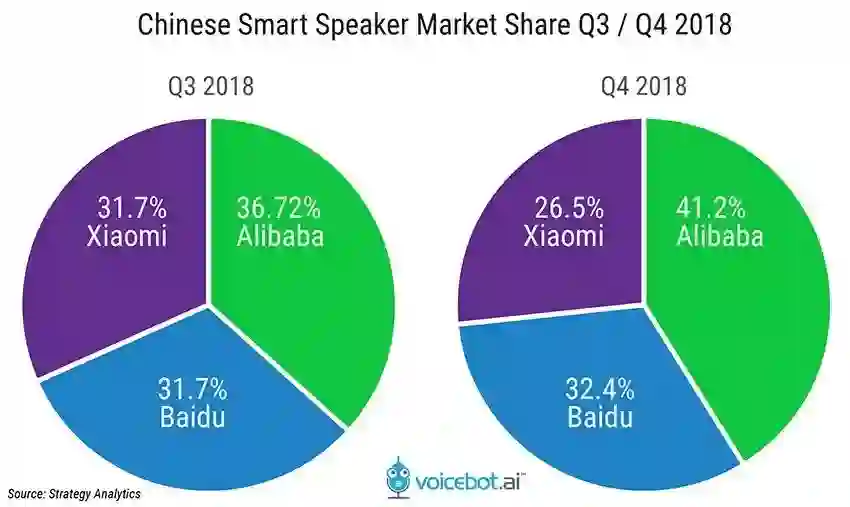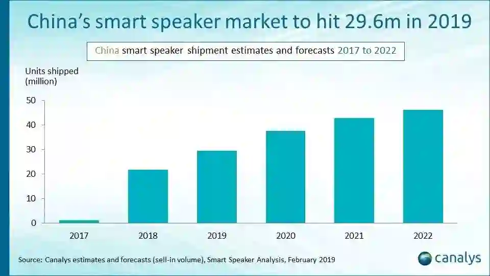 智能手机销量迟缓的背景下,中国的智能音箱市场却保持35%的增速,2018年出货量为2190万台,预计2019年的出货量为2960万台。并且2018年天猫官方数据显示,双十一促销当天,消费电子行业冠军首次花落智能音箱,而非过去以手机为主的传统消费电子产品。