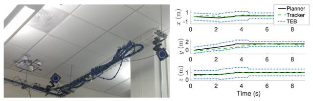 该算法同样能在硬件上工作!我们在开源Crazyflie2.0无人机平台进行了测试。如你们在图12所见,我们控制无人机一直待在跟踪界内,即使规划轨迹发生变化。