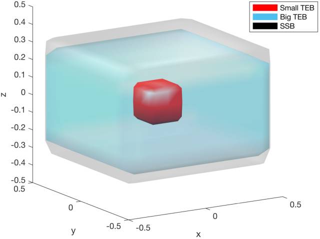 实现以上方法的关键在于确保所有规划中的转变都是安全的。这可能有点复杂,但是主要的思路是:如果我们能保证A的不变集包含于B中,则两个规划器A,B之间的转变是安全的。对于许多组规划器来说这是成立的,例如在图7中从蓝色边界转换到红色边界的过程。但也不全是这种情况。通常来说,我们需要解决一个与FaSTrack最初遇到的情况非常相似的动态博弈,我们想找到一个状态集,我们并不会离开这个集,并且从这个集我们可以进入B的不变集。通常得到的安全转换界(SSB)要比A的误差界(TEB)稍微大一些。