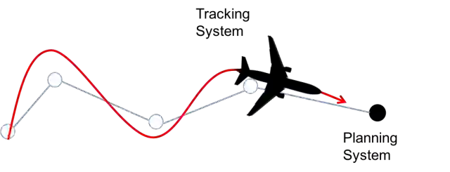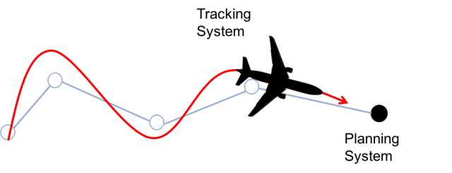 图3.跟踪系统使用复杂的真实系统,规划系统使用非常简单的模型,跟踪系统追着规划系统。
