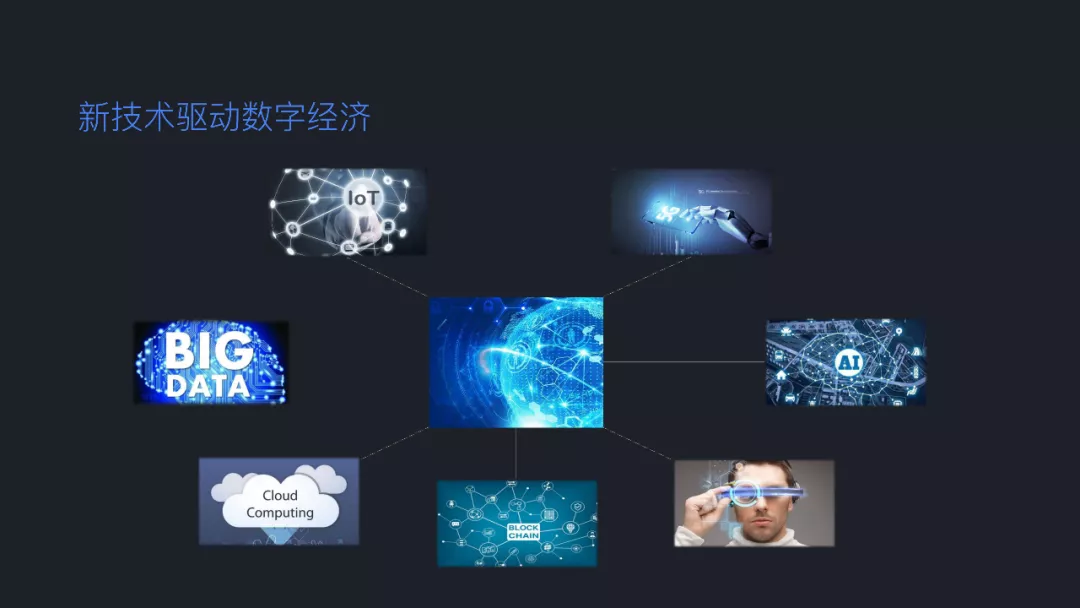 数字经济的发展,主要是由高新技术来驱动的,从这张图可以看到,跟数字经济相关的这些技术,就是当前最时髦的一些技术,这里边有大数据、云计算、人工智能、区块链、5G 等等,还有最近比较热的元宇宙,这些都可以驱动数字经济的发展。