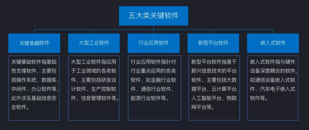 好多人都不太理解,说这个特色化示范性软件学院主要特色在什么地方呢?这里给大家做一些介绍,对于我国的软件产业来说,现在比较关注的有五大关键软件领域,基础软件、大型工业软件、行业应用软件、新型的平台软件,以及嵌入式软件。这五大软件领域有些产品是我们的短板,国家要在这五大领域加强支持力度。