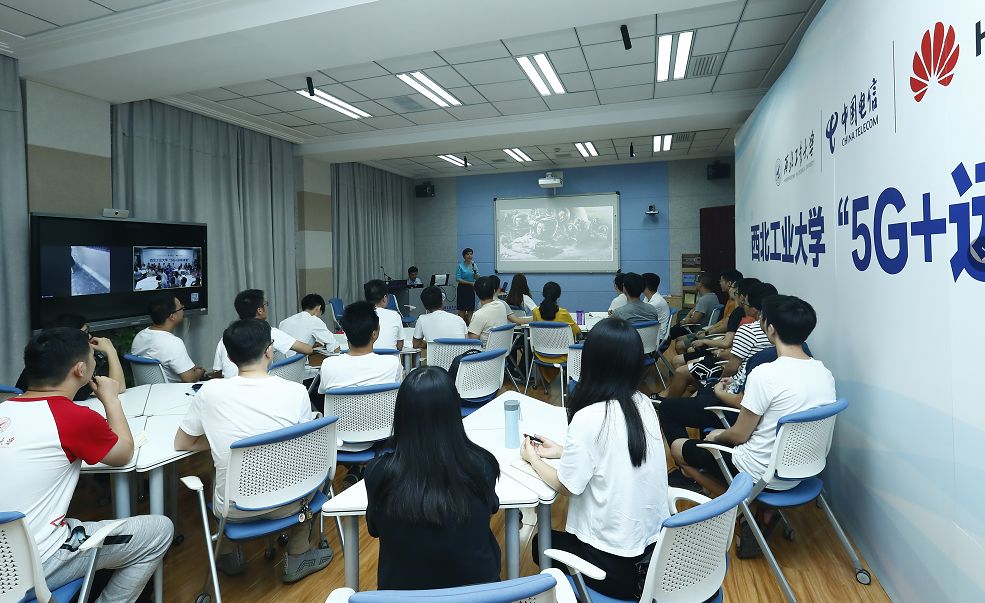 自今年3月5日起,学校与中国电信陕西公司深度合作,常态化、高频次利用先进的网络通讯开展不同主题的远程科普。而这一次不同的是,同学们所处的地点是由西工大、陕西电信、华为公司联合建设的5G教室,教室实现5G信号全覆盖,这是国内首次实现5G技术和教育扶贫融合应用。