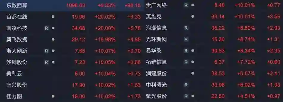 A股市场的50只“东数西算”概念股集体上涨,当日收盘涨停个股达到24只。