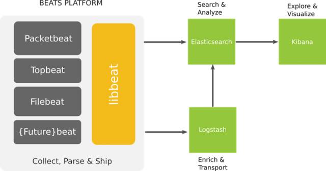 下图是集中式日志管理 ELK 的架构图。出于性能的考虑,选择采用了 Beats+EK 的形式来组合搭建集中式日志管理系统。