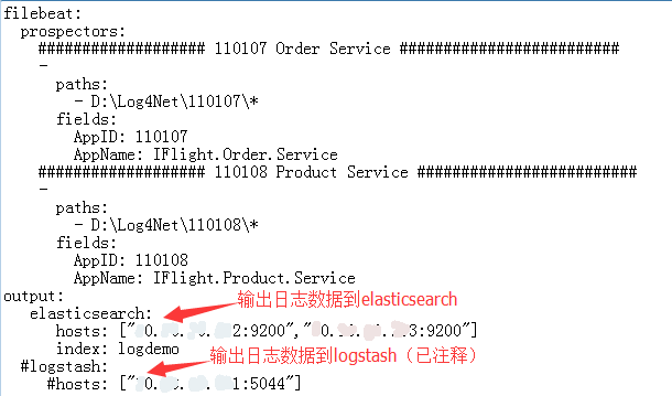filebeat.yml 的配置示例如下图所示: