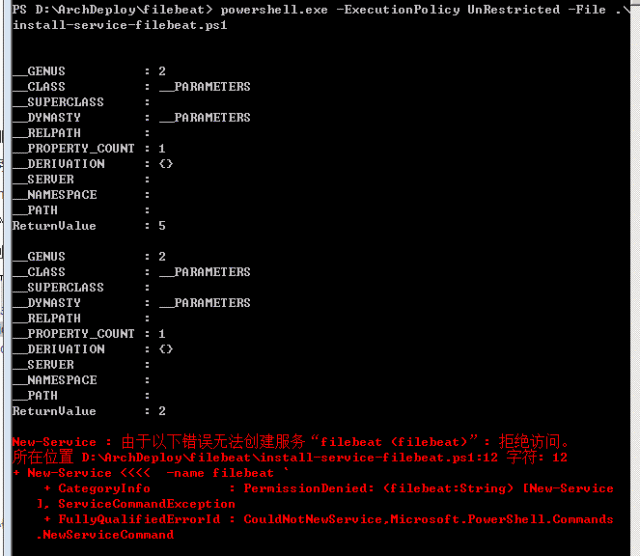 2、导向到 filebeat 执行程序所在目录,例如:cd 'E:\ELK\filebeat-1.3.0-windows',然后执行命令:powershell.exe -ExecutionPolicy UnRestricted -File .\install-service-filebeat.ps1。