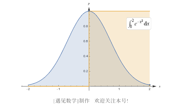 它相当于由 x 轴、曲线 y = e^(-x²) 以及直线 x = 0 与 x = 2 所围成区域的面积, 如图 B-1 所示.