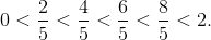 我们取 n = 5. 由于 [0, 2] 的长度为 2 单位, 从而每一条的宽度为