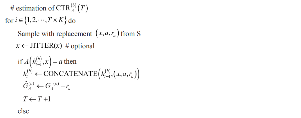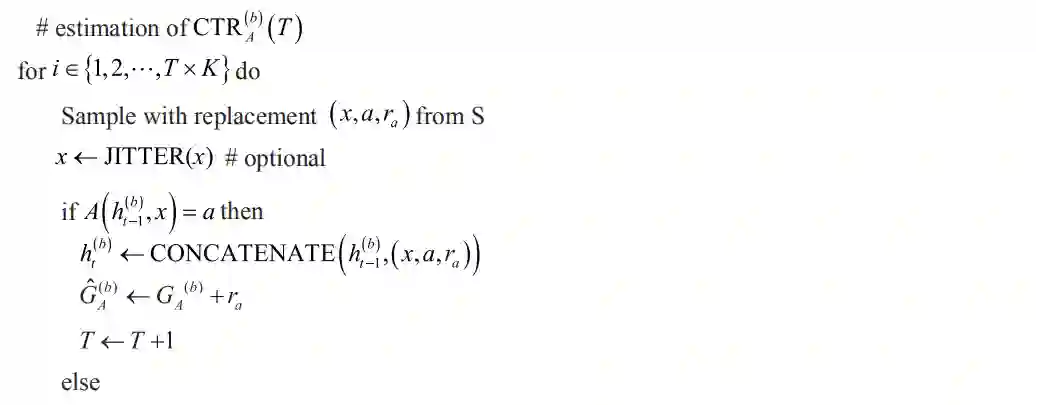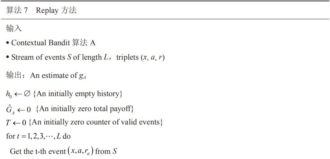 使用历史日志数据 D={(x,a,ra)},要求每个臂以 1/K 概率被选择,满足独立同分布。