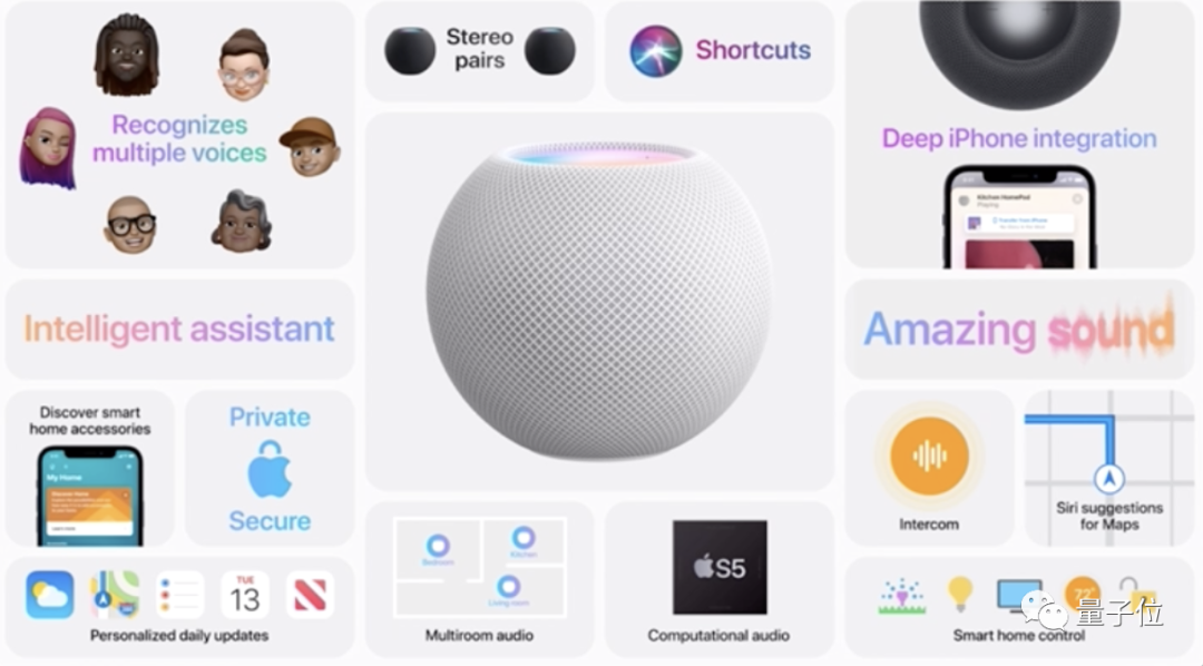 这个HomePod mini 搭载了 S5 处理器,和 HomePod 一样,它可以对声音以及空间进行计算,每分钟180次。