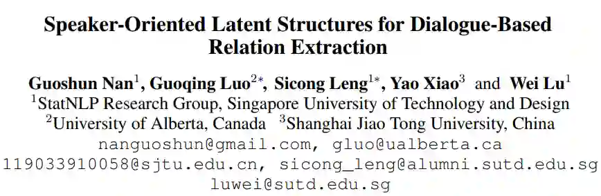 Speaker-Oriented Latent Structures for Dialogue-Based Relation Extraction