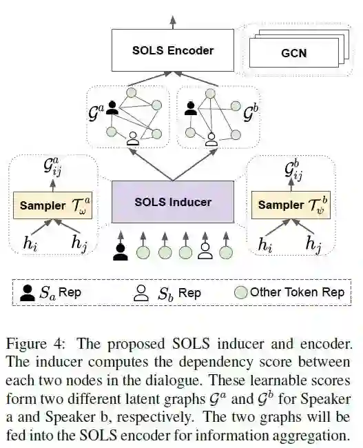 2. 上下文化的表示将被输入到 SOLS 诱导器(SOLS Inducer)中,以自动生成两个面向说话者的潜在结构和一个新的正则化项,旨在缓解纠缠的逻辑和数据稀疏问题。