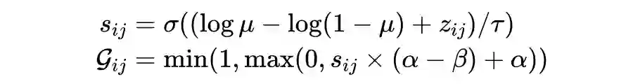 由于 BC 的随机条件,是由之前步骤生成的,因此定义为(0,1)开区间,值 0 和 1 不能被采样到。因此,作者依靠 Hard Concrete(HC)分布将采样从开区间拓展到闭区间。